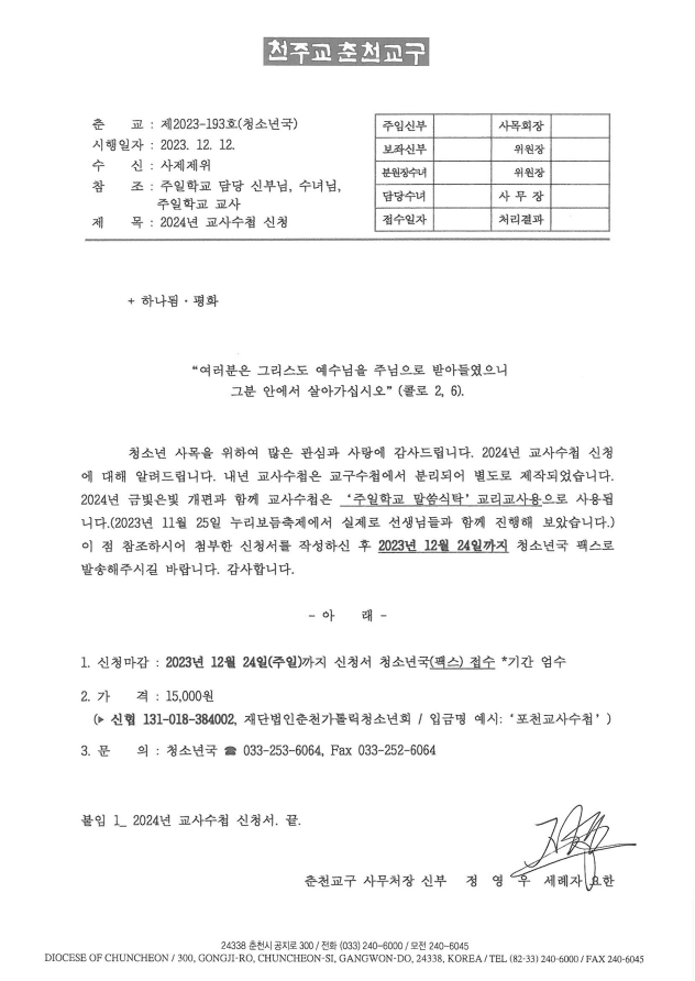 작성자 (재)춘천가톨릭청소년회 등록일 2023-12-12 조회수 562