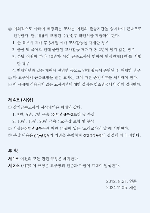 [공지] 제 목 : 장기근속 교사 포상 규정